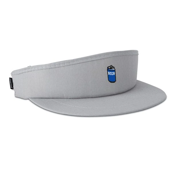 The Hold My Beer Tour Visor® - Made in the USA. After a long day, cracking open a cold one is really the only option, plus you deserve it. The small "beer" can is directly embroidered on the center front of our classic high crown Tour Visor® in a great color scheme of white, royal, and black. Made right here in the U.S.A. this visor is designed and built with the utmost attention to detail and superior high quality fabrics.