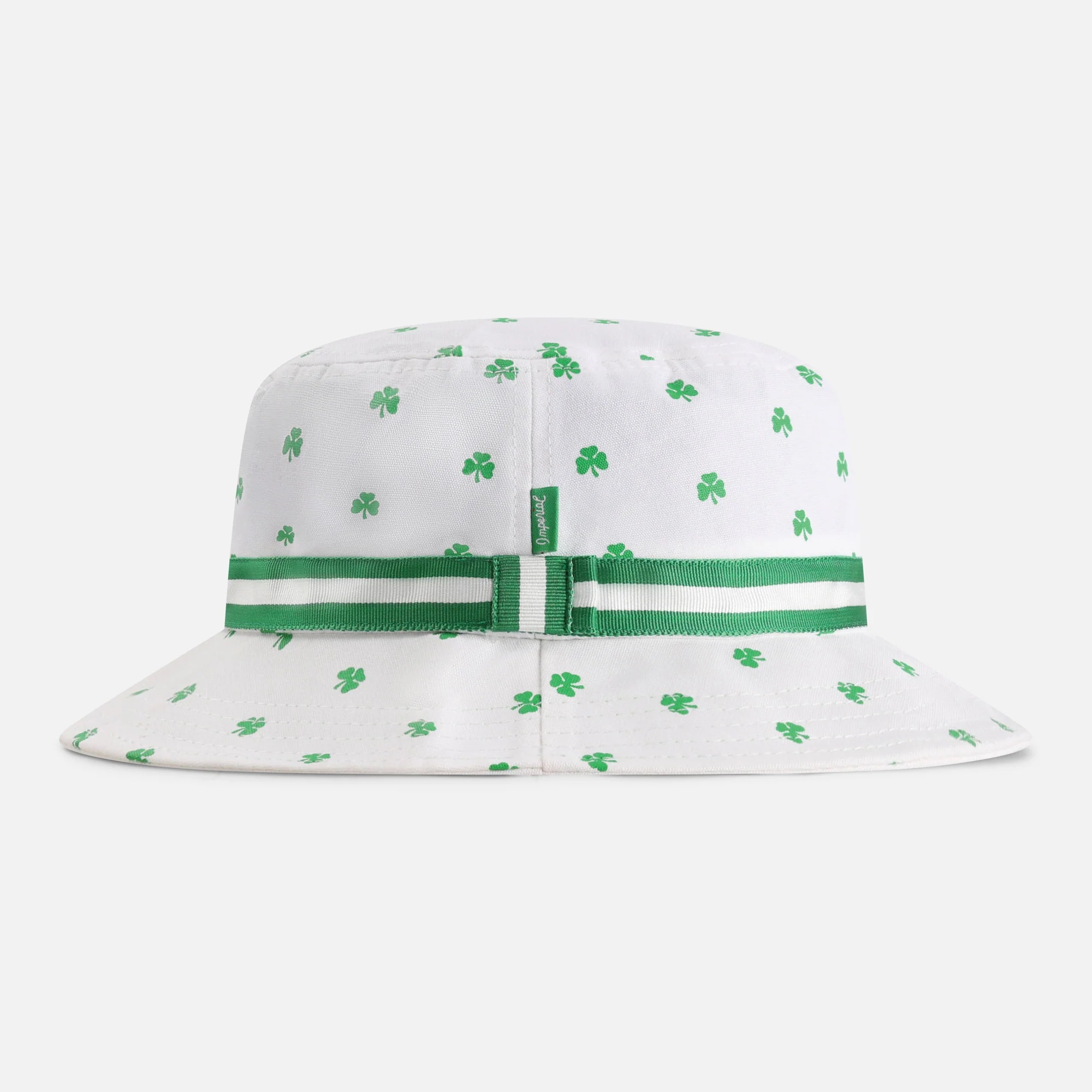 The Duffy Bucket screams 'I love shamrocks!' - in a good way. Our exclusive shamrock pattern fabric in our classic golf hat shape, finished off with a traditional two color striped ribbon.